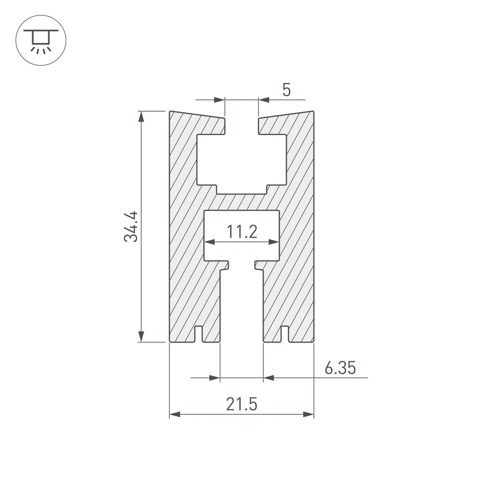 Алюминиевый анодированный профиль для монтажа и подсветки 6мм стекла (засветка до 15см) или PC (засветка до 60см). В комплекте талрепы 14шт на 2м профиля. Габаритные размеры (L×W×H): 2000x21,5x34,4 мм. Ширина площадки для ленты 11 мм. Заглушки и другие аксессуары приобретаются отдельно. Цена за 1 метр.