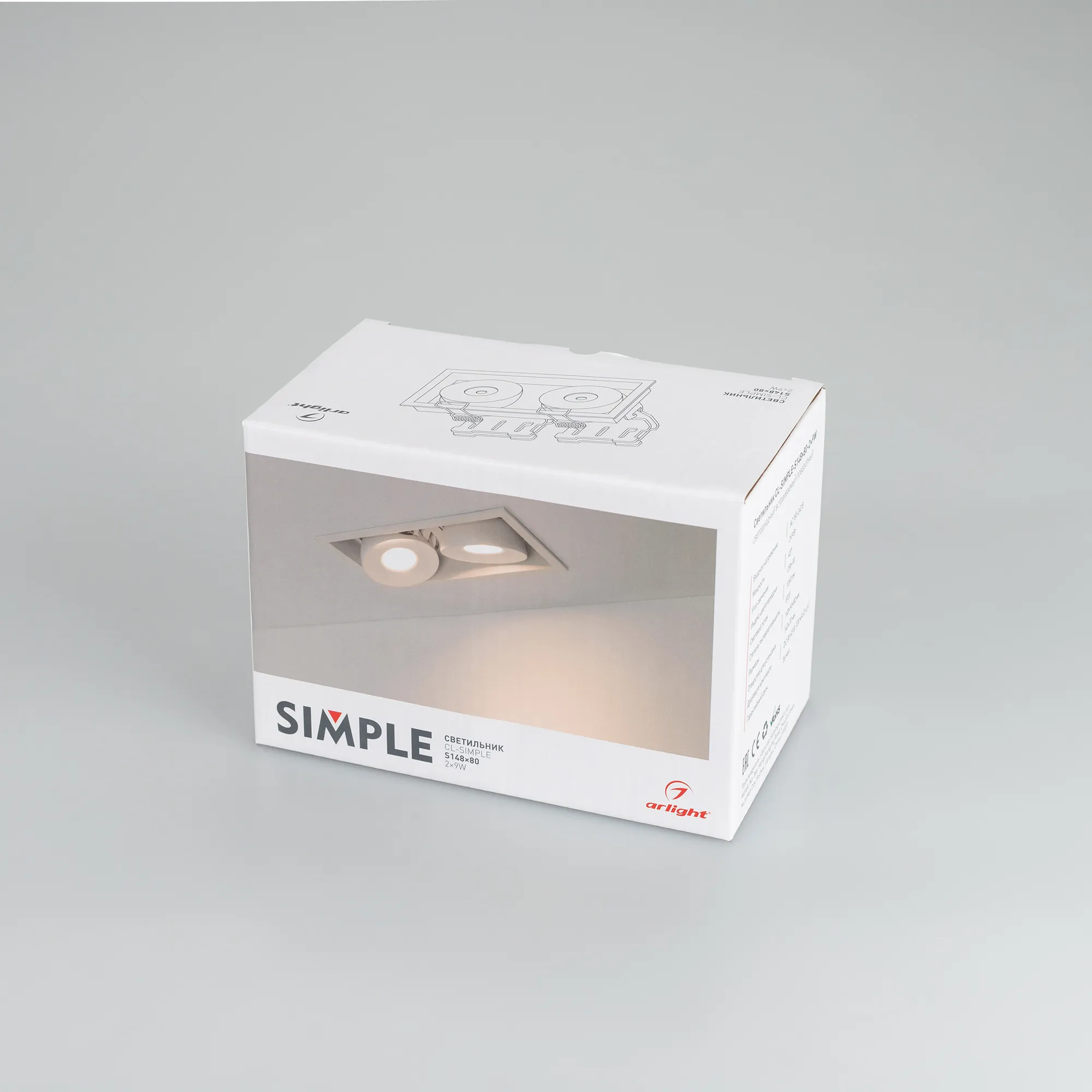Светильник CL-SIMPLE-S148x80-2x9W Warm3000 (WH, 45 deg) (Arlight, IP20 Металл, 3 года)