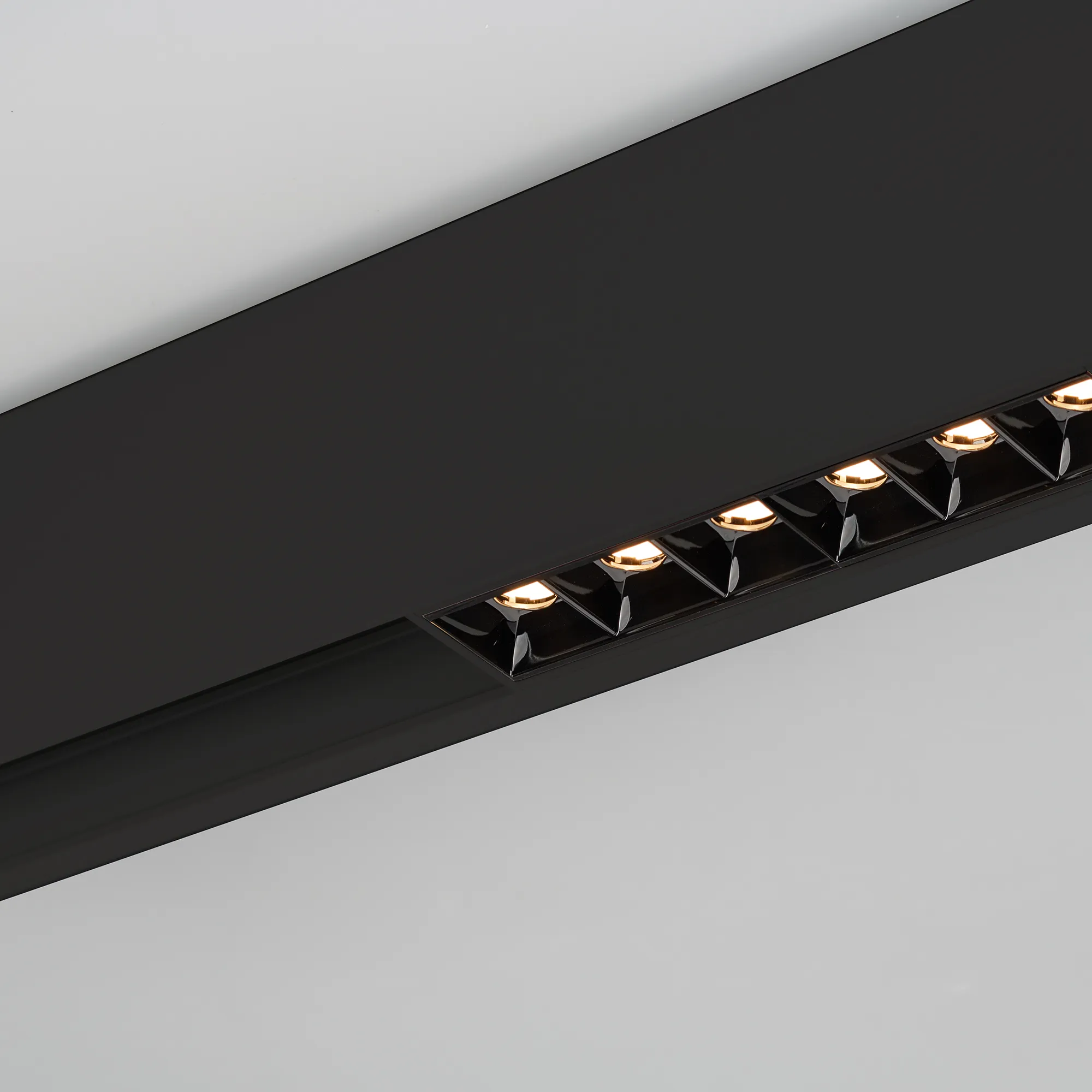 Светильник для магнитных треков шириной 45мм, 27Вт. Цвет свечения ТЕПЛЫЙ 3000K, световой поток 1680лм, угол 36°, CRI>90. Корпус прямоугольный, металл, цвет черный, IP20. Размеры LxWxH 481x35x43мм. Входное напряжение DC24V, мощность 27Вт. Драйвер DС24V/AC230V поставляется отдельно. Диммируется только с 026407(1), 027633.