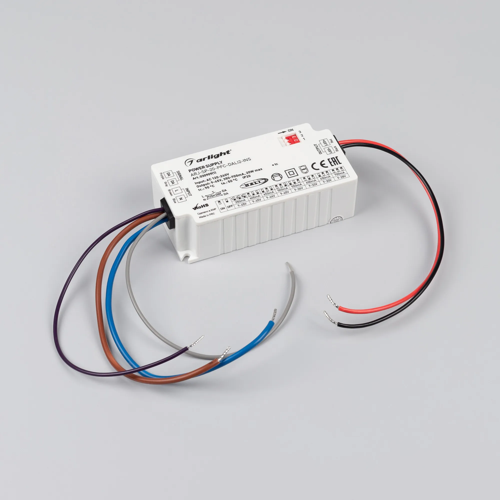 В магазине Arled Market Вы можете купить "Блок питания ARJ-SP-20-PFC-DALI2-INS (20W, 9-45V, 0.35-0.7A) (Arlight, IP20 Пластик, 5 лет)"